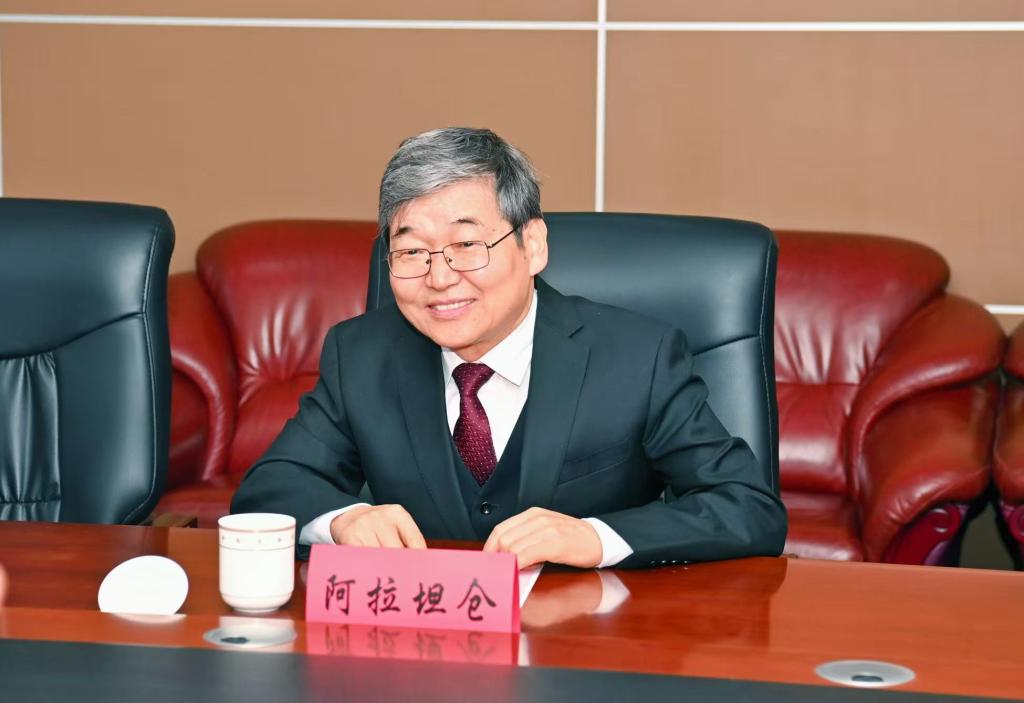 阿拉坦仓教授简要介绍教育部数学与应用数学专业虚拟教研室和内蒙古自治区应用数学中心成立和运行的基本情况,希望以此为契机与工业大学进一步加强沟通交流,在助力学校数学学科实现高质量建设与发展的进程中贡献智慧、凝聚力量。