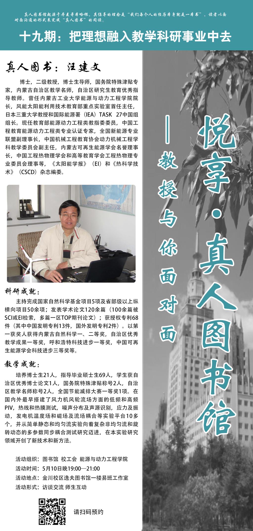 【悦享·真人图书馆】教授与你面对面——把理想融入教学科研事业中去