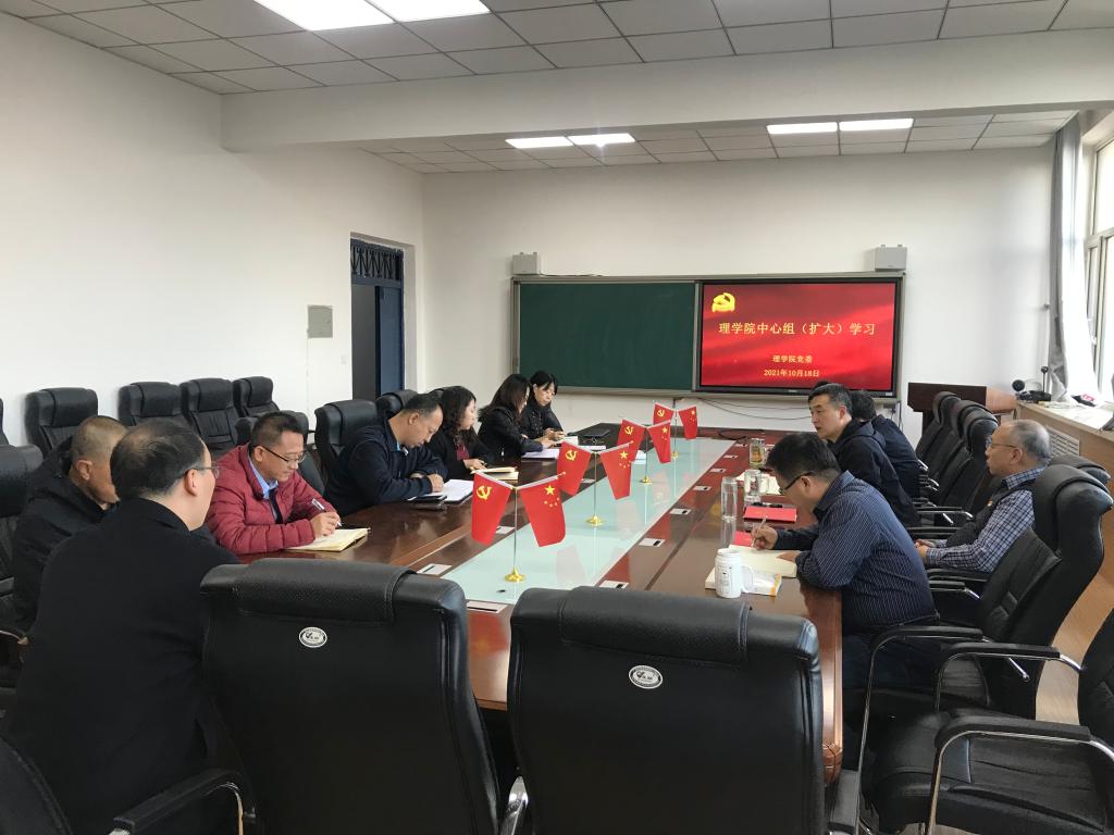 10月18日下午,理学院党委在新城校区实验楼516会议室召开理论学习中心组(扩大)学习会,专题学习习近平总书记在纪念辛亥革命110周年大会上的讲话。学院党委理论学习中心组成员、教工各党支部书记、行政支部人员参会,学院党委书记姜鑫主持会议。