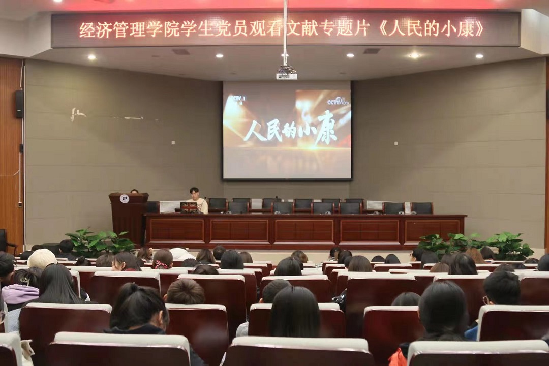 10月19日晚,经济管理学院党委组织全体学生党员在新城校区图书馆报告厅观看电视纪录片《人民的小康》。