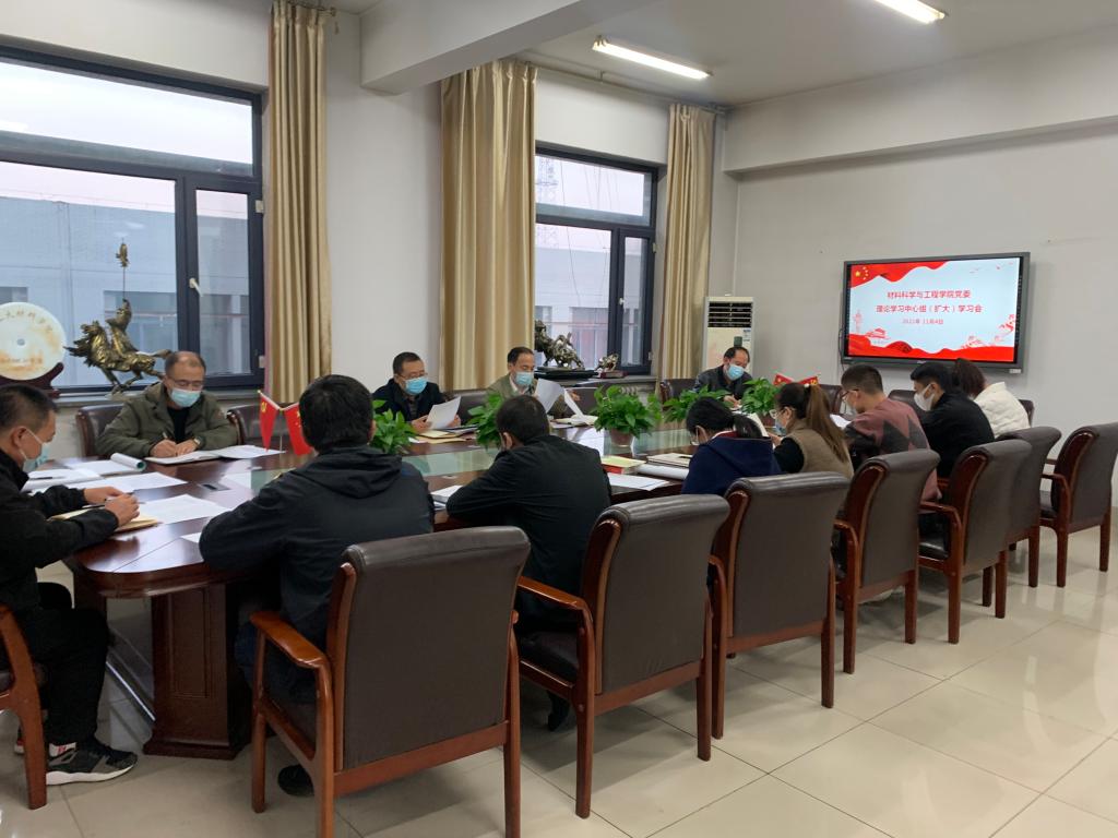 11月4日下午,材料科学与工程学院党委召开理论学习中心组(扩大)学习会。学院党委书记白朴存主持会议,学院全体党委委员、党支部书记参会。