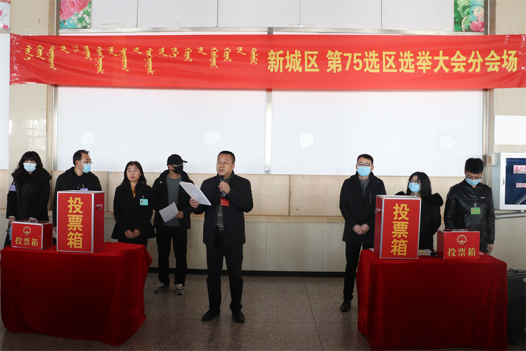 大会在庄严的国歌声中开始。会议宣布了正式代表候选人名单,宣读并通过了《第75选区第十八届人民代表大会代表选举办法》和监票员、计票员建议名单,现场宣读了投票注意事项。随后,郭凌峰宣布选举大会开始,现场师生认真填写选票,并依次投出自己庄严神圣的一票。