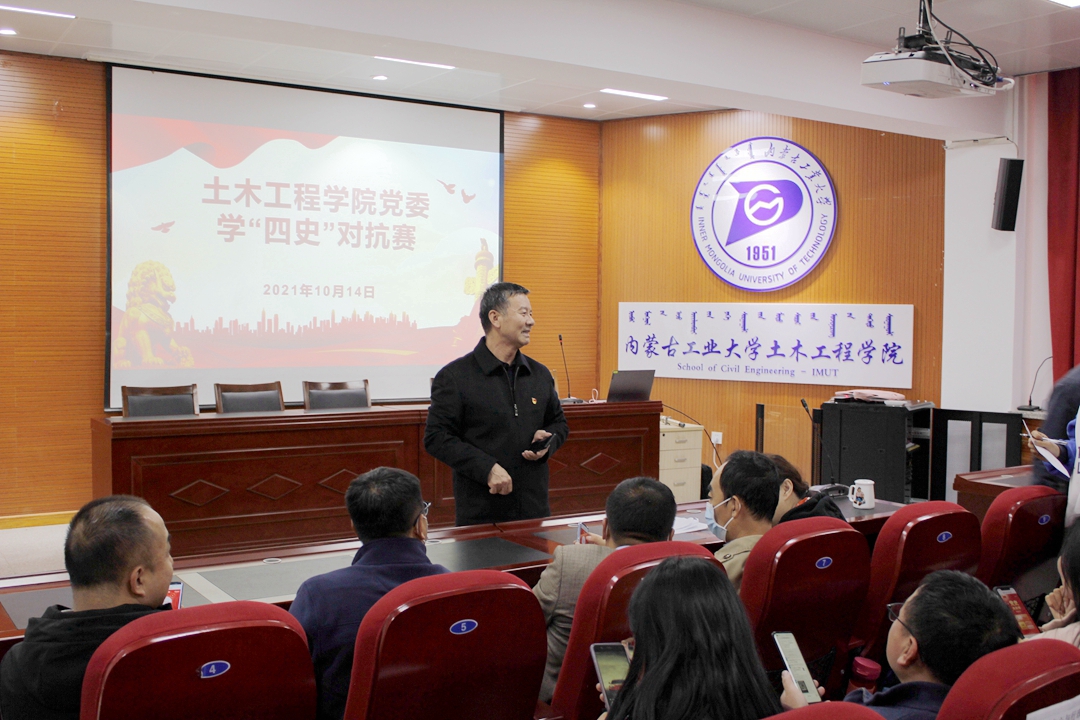 为引导学院师生深刻认识中国共产党的光荣历史和丰功伟绩,从党史学习中激发信仰、获得启发、汲取力量,厚植爱党爱国爱社会主义情感,11月25日,土木工程学院党委在新城校区土木馆B219举办“知史爱党 知史爱国”四史知识对抗赛。