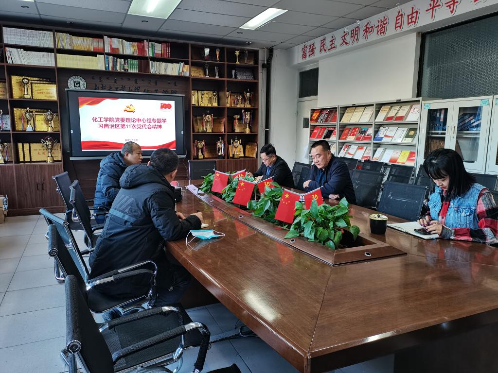 12月3日上午,化工学院党委理论学习中心组召开“学习贯彻自治区第十一次党代会精神”专题学习会。学院党委委员参加会议,院党委书记王凯主持学习会。