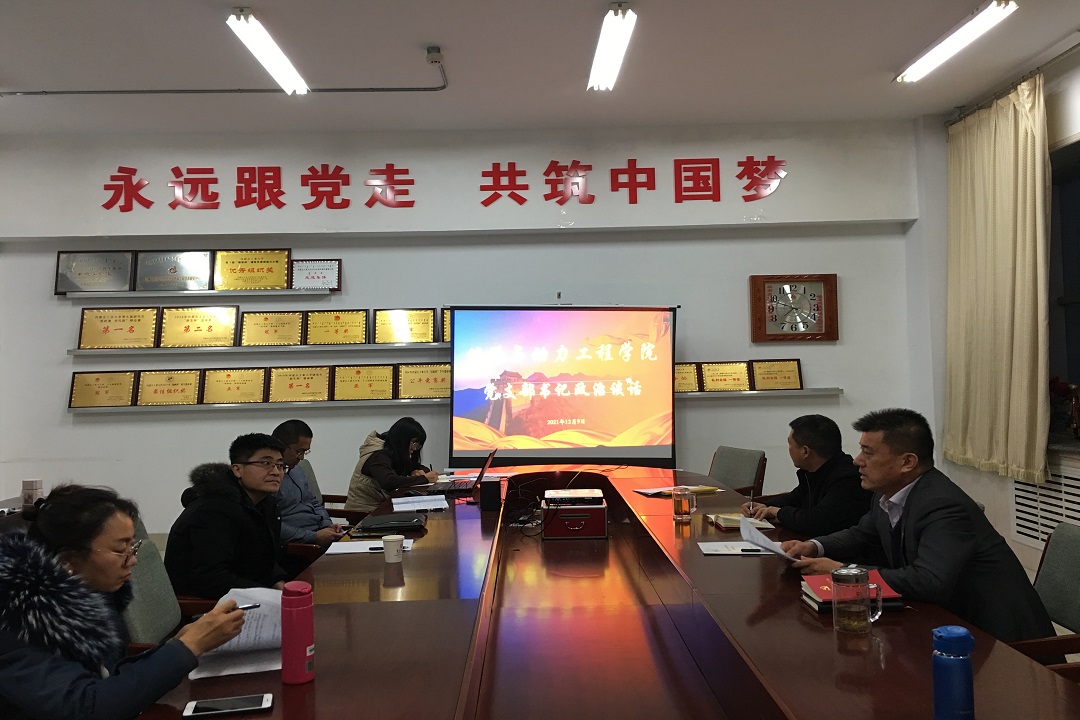 12月9日,能源与动力工程学院党委在新城校区工程技术楼A211B会议室开展党支部书记政治谈话。院党委书记王振友主持会议,全体党支部书记参加。