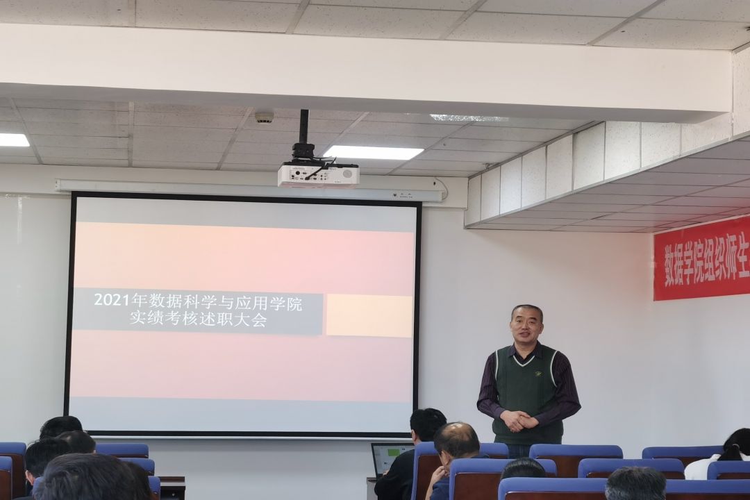 根据《开云kaiyun官网2021年教职工年度考核方案》工作部署要求,结合《开云kaiyun官网数据科学与应用学院2021年度教职工工作实绩考核通知》,2021年12月23日,数据科学与应用学院在金川校区电力大楼1608召开2021年度科级干部述职大会以及各部门教职工考核工作。会议由院长刘利民主持,全体教职工参会。
