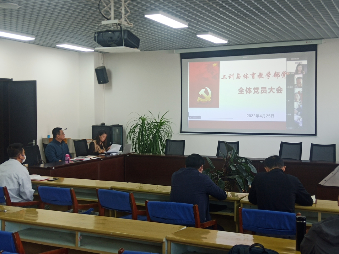 4月25日上午,工训与体育教学部党总支召开全体党员大会,部署集中治理党内政治生活庸俗化交易化问题专项工作。科级及以上党员干部参加线下会议,全体教工党员通过腾讯会议线上同步参加。党总支委员、体育教学部主任荀盛龙主持会议。