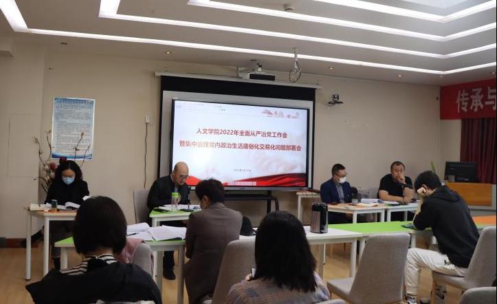 4月24日下午,人文学院党委在社工实验室召开集中治理党内政治生活庸俗化交易化问题工作部署会,全体教职工参会。院党委书记马利强主持会议。