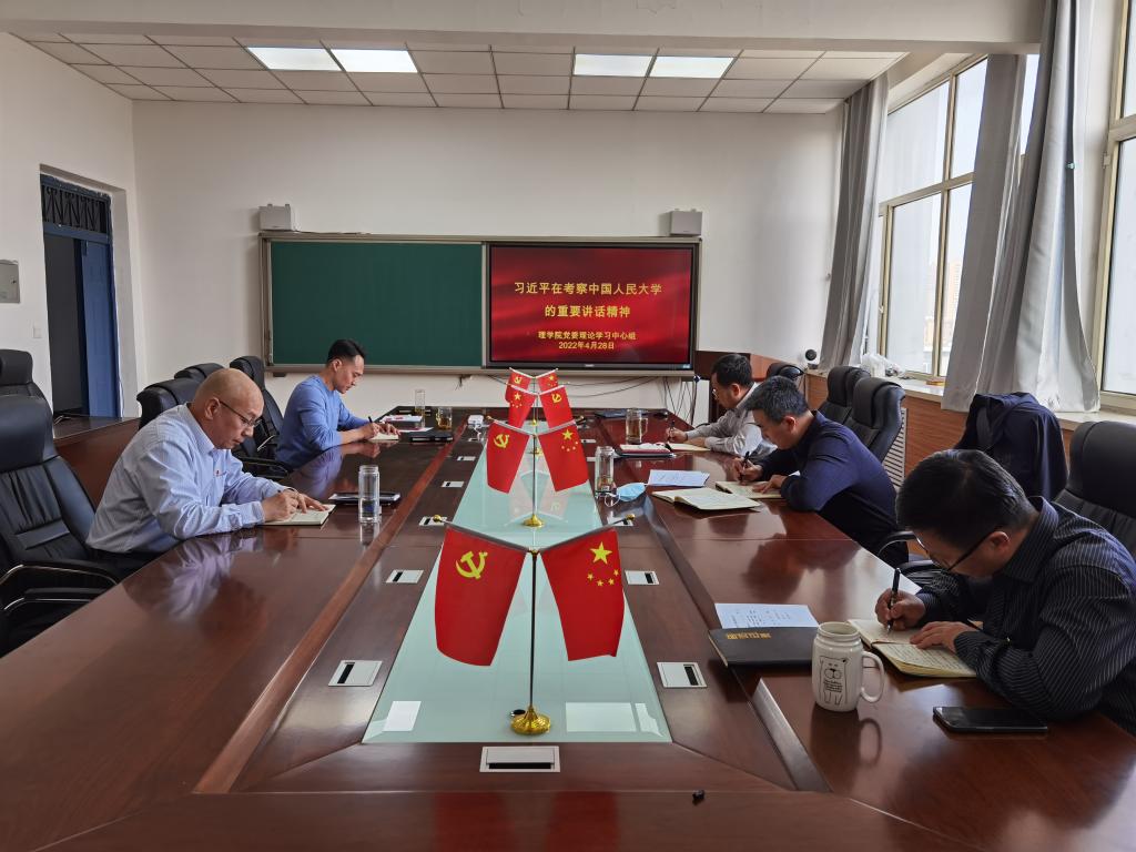 4月28日下午,理学院党委在新城校区实验楼516会议室召开理论学习中心组学习会,专题学习习近平总书记在中国人民大学考察时的重要讲话精神。学院党委理论学习中心组成员参加会议,学院党委书记姜鑫主持会议。