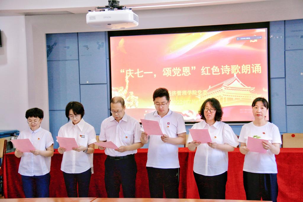 随后,教工党支部开展“庆七一,颂党恩”红色诗歌朗诵活动。各党支部分别朗诵了《可爱的中国》《党旗颂》《信念永恒》《我是一艘船》《党的赞歌》《我的祖国》6个精心编排的节目,多维度、多侧面展示了中国共产党波澜壮阔的奋斗历程和取得的丰功伟绩,更加坚定了全体师生党员坚定不移听党话、一片忠心跟党走的真挚情感。