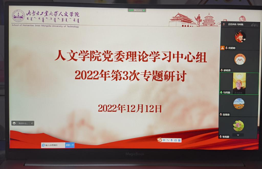 12月12日,人文学院党委理论学习中心组举行2022年第3次专题研讨院党委书记马利强主持会议。中心组全体成员结合前期自学党的二十大报告关于科教兴国战略的重要论述、开云“十四五”发展规划及子规划内容,围绕“落实党的二十大科教兴国战略部署,科学谋划学院十四五发展规划”主题交流发言。