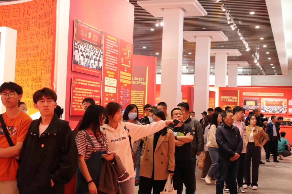 本次展览主要包括“新时代伟大成就”“高举伟大旗帜”“创造新的伟业”三个单元。展览形象生动地解读了党的二十大精神,全面立体呈现了在习近平总书记的亲切关怀和党中央的坚强领导下,内蒙古十年来在经济、文化、社会等各个领域所取得的辉煌成就,以及全区各地各单位学习贯彻党的二十大精神的具体举措和实际行动。大家仔细观看展览,认真听取讲解,详细了解有关情况,并相互交流参观心得体会。