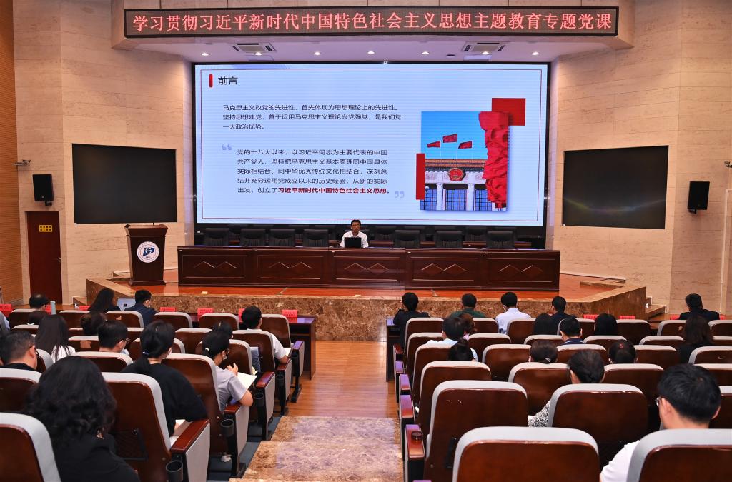 党委宣传部部长李兴华作《扎实抓好学习贯彻习近平新时代中国特色社会主义思想主题教育》专题党课,从开展主题教育的时代背景、目的意义、内容要求3个方面进行讲授。