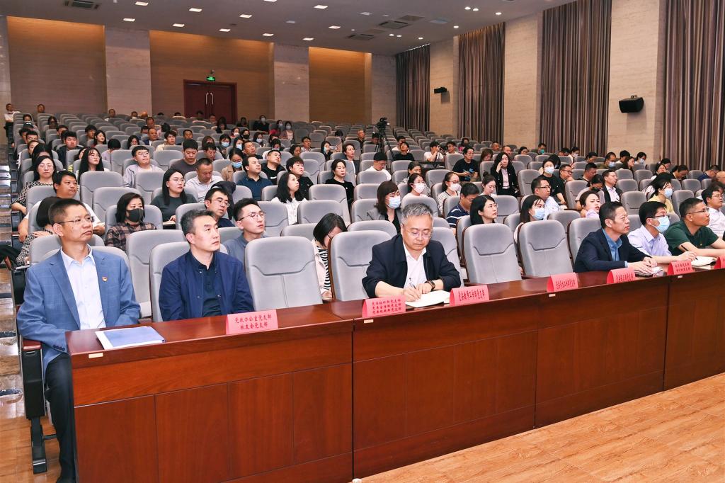 5月18日下午,机关党委在新城校区明德楼第一报告厅召开理论学习中心组(扩大)集体学习会暨学习贯彻习近平新时代中国特色社会主义思想主题教育专题党课。机关党委所属全体党员参加会议,机关党委书记李云飞主持会议。