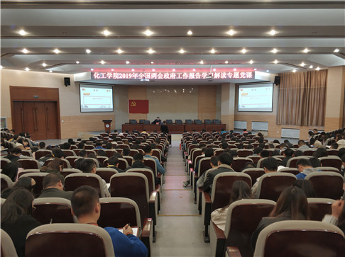 为深入学习宣传贯彻2019年全国两会精神,3月24日上午,化工学院党委在新城校区第三教学楼报告厅举办《思想引领潮流 奋斗成就梦想——2019年全国两会政府工作报告学习解读》专题党课。院党委书记王凯主讲,全体学生党员及第十七期党校学员500余人参加学习。