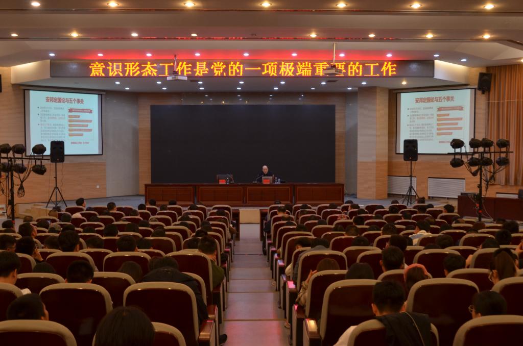 庄虔友教授在报告中,对“意识形态”概念的历史演变、丰富内涵及重要功能等作了明确阐释,从意识形态工作的地位与作用、当前意识形态领域面临的形势与问题、新时代如何做好意识形态工作等方面全面解读了习近平总书记关于意识形态工作的重要论述。庄虔友教授结合国内外形势,旁征博引,列举实例和具体数据,深入分析了我国当前意识形态工作面临的新挑战、新形势,深刻阐述了意识形态工作是党的一项极端重要工作