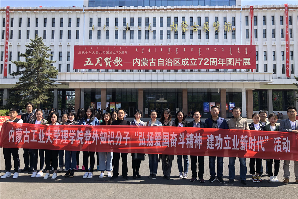 为学习贯彻习近平新时代中国特色社会主义思想和党的十九大精神,团结凝聚党外知识分子,做好新时代党外知识分子统战工作,理学院党委组织党外知识分子深入开展“弘扬爱国奋斗精神,建功立业新时代”观展活动。5月9日下午,学院党外知识分子、党员师生代表等近30人赴内蒙古展览馆参观“五月赞歌——内蒙古自治区成立72周年”图片展。