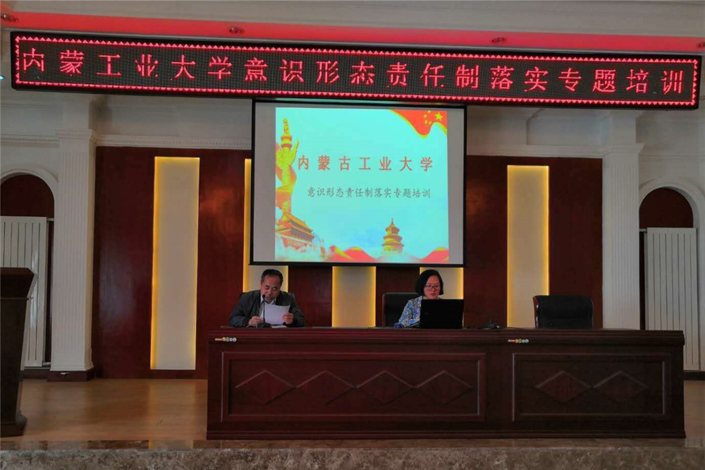 为深入贯彻落实习近平新时代中国特色社会主义思想和党的十九大精神,推动意识形态工作责任制落实落细,5月16日,电力学院在金川校区电力大楼十楼报告厅开展意识形态责任制落实专题培训讲座。本次专题培训由内蒙古党校哲学教研部教师刘倩主讲,电力学院院长王志和主持。全体教职工参加讲座。