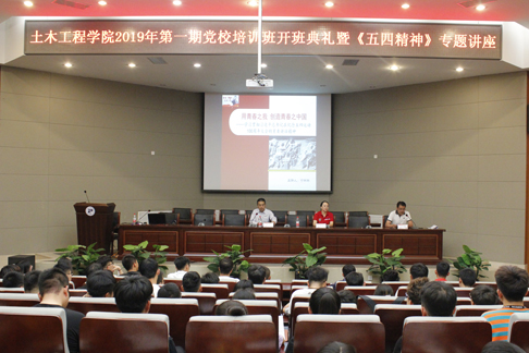 5月23日,土木工程学院党委在新城校区图书馆报告厅举办2019年第一期党校培训班开班典礼暨“五四精神”专题讲座。马克思主义学院副院长宁琳琳,土木工程学院党委副书记、副院长陈辉,团委书记兼党务秘书韩晓磊,学生入党积极分子及党员发展对象共200余人参加本次开班典礼。