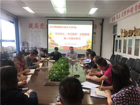 9月25日下午,化工学院党委召开“不忘初心、牢记使命”主题教育第一次理论学习中心组(扩大)学习会。院长韩利民主讲《习近平总书记教育理念和高等教育的新形势》,学院领导班子、全体科级干部、党支部书记参加会议,学院党委书记王凯主持学习会。