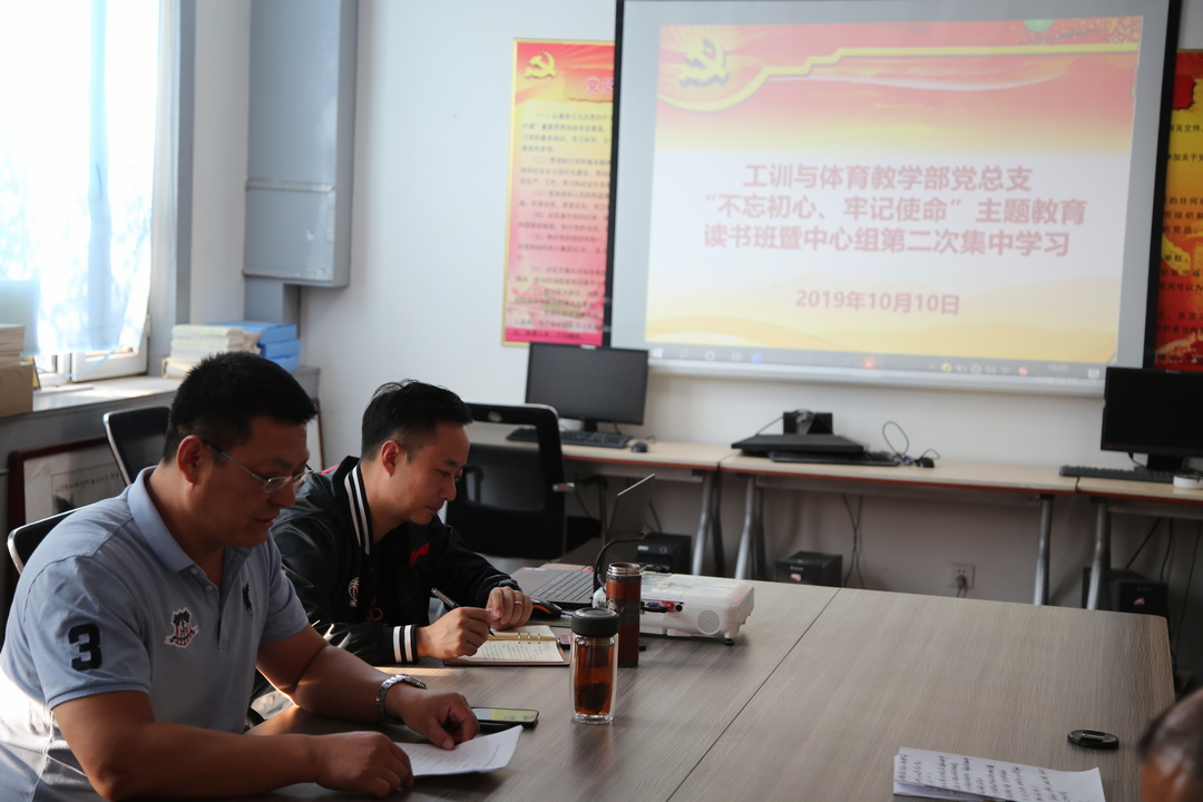 10月10日,工训与体育教学部党总支举行“不忘初心、牢记使命”主题教育读书班暨第二次中心组集中学习。全体党总支委员参加会议,党总支书记安雷主持会议。