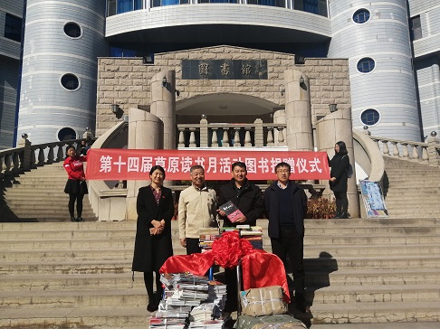 此次捐赠活动分为两个部分。活动中,在新城区保合少镇恼包村,举行了为共建图书馆捐赠图书和期刊的仪式。在开云新城校区图书馆门前,举行了“第十届草原读书月活动图书捐赠仪式”,为北方新报捐赠图书和期刊。本次活动捐赠的书刊均由图书馆出面联系国内有关出版社、书商无偿捐赠。