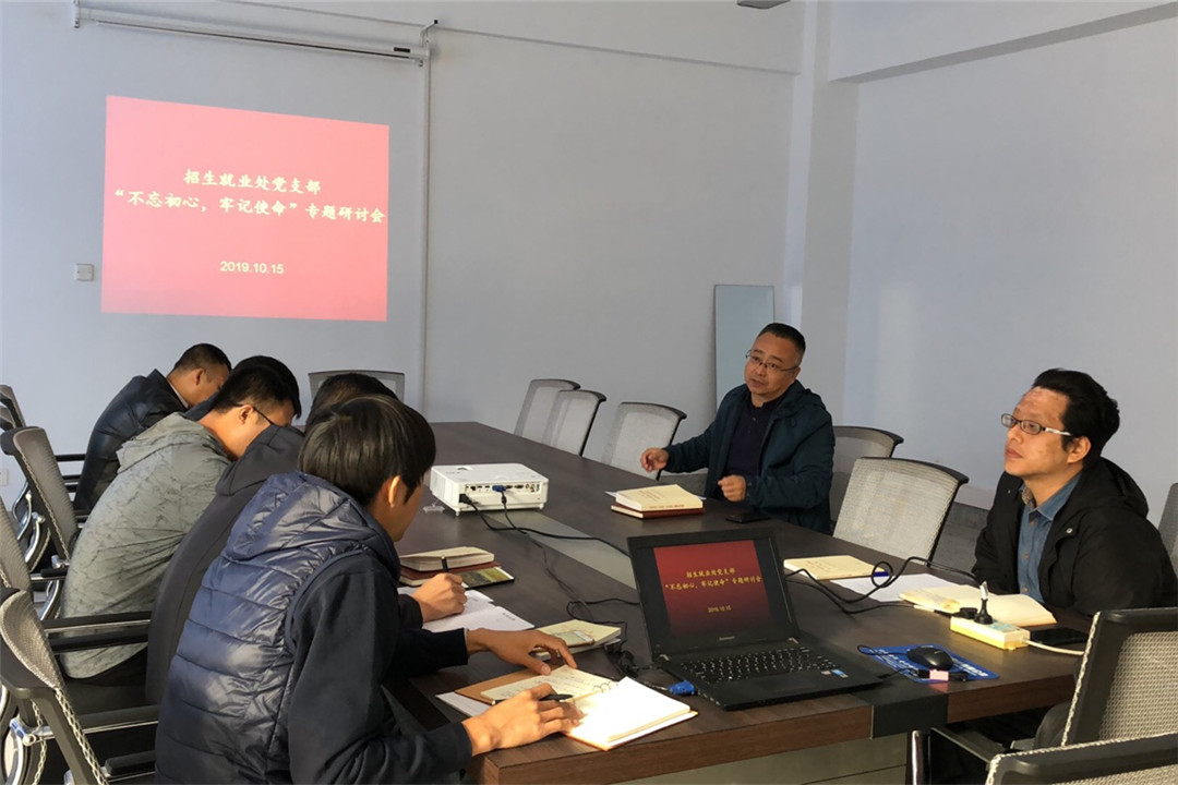 10月15日上午,机关党委招生就业处党支部在招生就业处会议室召开“不忘初心、牢记使命”主题教育专题研讨会。