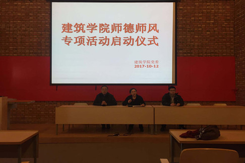 1012日下午,建筑学院在李大夏报告厅举行“师德师风”建设专项活动启动仪式。学院党委书记梁岚、院长贾晓浒、许国强以及建筑学院教工等60余人参加启动仪式。