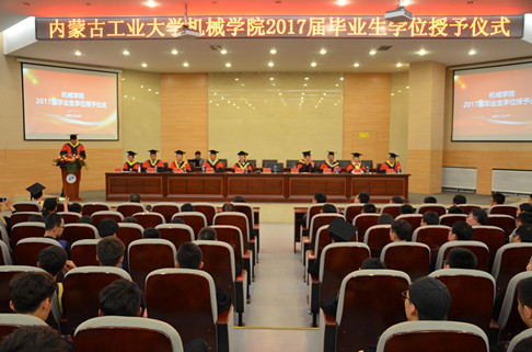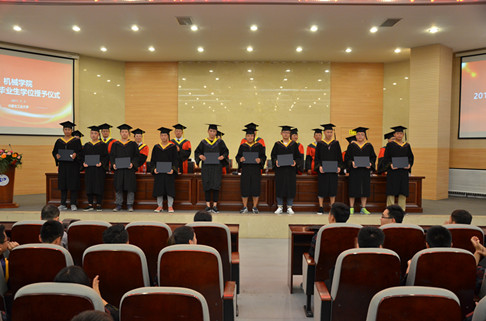 73日晚上,机械学院在第三教学楼二楼报告厅举行2017届毕业生学位授予仪式。学院领导班子成员、各教学单位、行政科室负责人、毕业生班主任和2017届全体毕业生参加。副院长宁琳琳主持仪式。