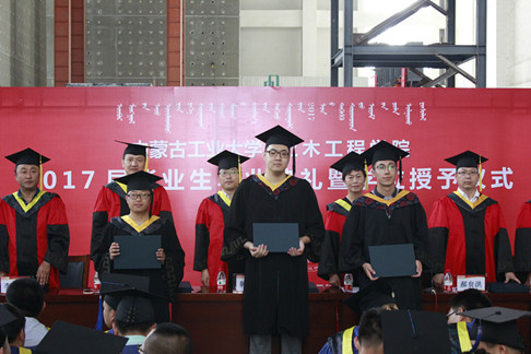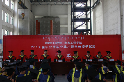 学院党委书记韩伟新宣读了学校的各项表彰决定。副院长郝贠洪宣读授予硕士、学士学位名单。土木学院分委会委员为获得学位的硕士、学士共779人依次拨穗正冠、授予学位。李静同学代表研究生发言,土木13-2班的白雅日图同学代表本科生发言,建工系时金娜老师代表教师发言,道桥13-1班的张展铭同学宣读“路桥之心”助学金倡议书,学院路95级校友、内蒙古大学交通学院教师李卓英代表校友讲话。