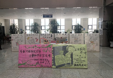 金川校区逸夫图书馆举办“文明阅读,从我做起”的倡议宣传活动。活动中,用漫画的形式生动的表现出图书馆现有的不文明行为,展出部分破损图书。