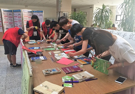 新城校区图书馆的老师们准备了修补工具,现场邀请学生读者,对破损图书进行修补。参与修补的学生读者感到,举办这样的活动可以唤起同学们爱护图书的意识。