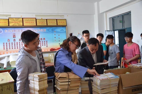 于永立老师在呼和浩特职业学院从事多年教学,曾执教机械制图、液压基础知识、工程图学等相关的专业,本次捐赠书籍不仅有专业书籍,还有于永立老师夫人从教多年的英语类书籍。捐赠书籍分机械教材类、机械制图习题类、机械手册类、建筑教材类、经济类、文学类、英语类等280余本。于永立老师希望,通过捐赠的书籍能够为机械学院的同学们丰富精神文化,提高专业技能。