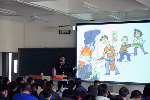 学校消防教育中心张鹏飞教员为师生讲解了火场逃生的基本知识、灭火器的正确使用以及如何正确报警,实验室消防安全的注意事项,进一步提高了师生消防安全意识及应对突发事件的能力。在学校武保处的组织安排下,师生参加了消防演练,通过实际操作掌握了使用灭火器材的操作要领。