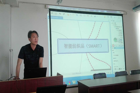 高晓平老师作了题为《多轴向经编玻纤增强复合材料力学性能研究》的学术报告,介绍了多轴向经编织物特点,并结合自己的科研经历阐述了以多轴向经编织物为增强体、树脂/固化剂混合液为基体应用真空辅助成型复合材料的成型工艺、拉伸和弯曲性能,分析了纤维排列对复合材料性能的影响;陈晓东老师作了题为《机敏型复合材料》的学术报告,介绍了智能纺织品开发的基本思路,以及机敏材料的结构与性能;陈思老师作了题为《经编间隔织物增强聚氨酯复合材料吸声性能》的学术报告,阐述了经编间隔织物增强聚氨酯复合材料在1006 300 Hz 的声波范围内的吸声性能,以及织物结构变化对复合材料吸声性能的影响。