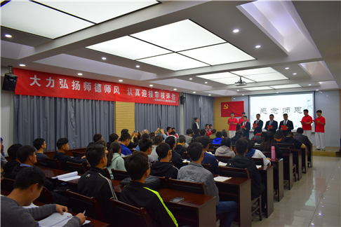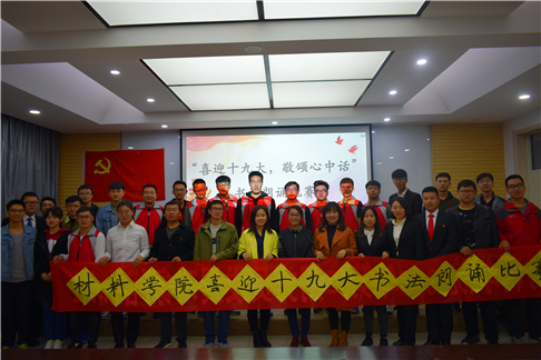 1017日,材料学院党委在工程技术楼举办喜迎十九大,敬颂心中话书法朗诵比赛。学院团委书记马晓凤、辅导员菅妮和各支部书记担任评委,部分党员和积极分子观看比赛。