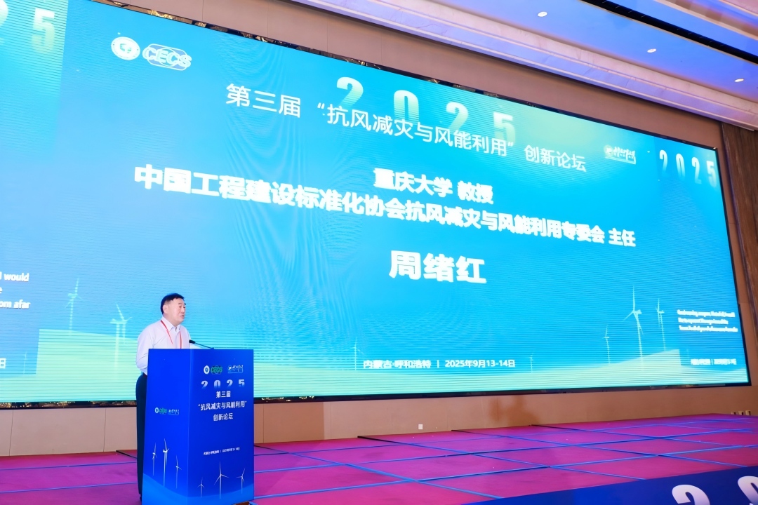 周绪红教授首先代表主办方向来自全国各地的专家学者表示热烈欢迎,对专委会三年来在标准体系建设、科技创新引领等方面取得的成果给予高度肯定。周绪红教授指出,论坛始终聚焦"抗风减灾与风能利用"核心主题,通过政产学研用协同创新,有效打破了学科壁垒,推动了风工程、结构工程与新能源工程的交叉融合。本届论坛特别设置了建筑抗风、桥梁抗风、风电结构等专题研讨,既回应了产业发展需求,又涵盖了领域前沿议题。致辞中特别强调,内蒙古作为论坛举办地具有双重示范意义,既是承受沙尘暴与寒流侵袭的抗风减灾重点区域,又是风电装机规模超8500万千瓦、风电占比达30%以上的清洁能源基地。周绪红教授诚挚邀请与会专家实地考察当地在生态保护、抗风减灾和风电开发等领域取得的成就。