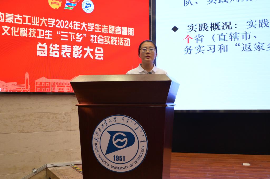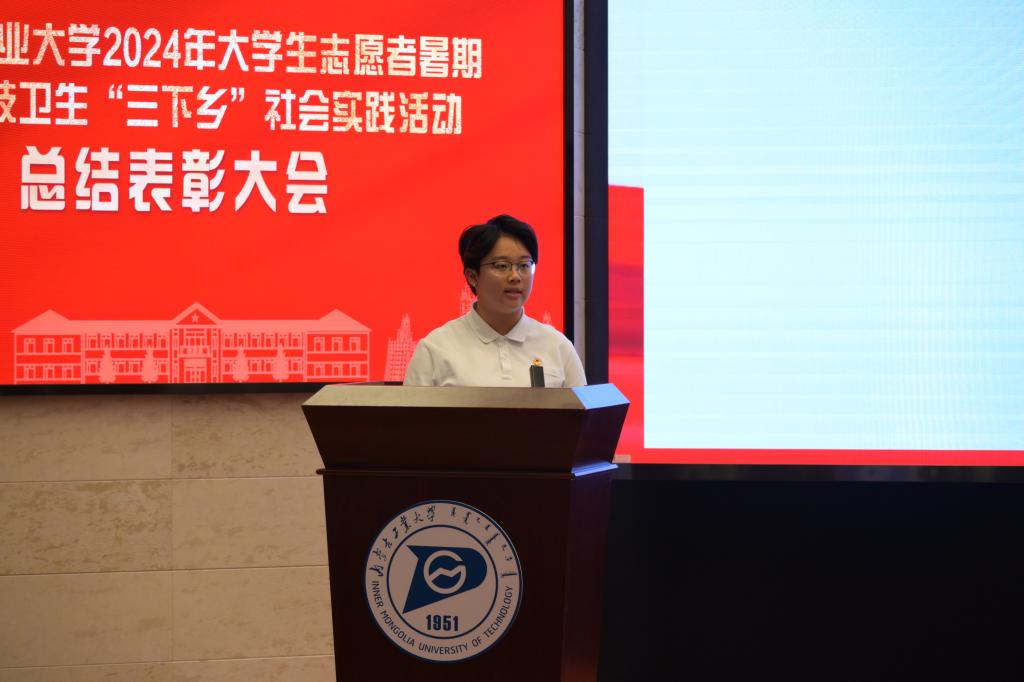 会上,校团委负责人作开云kaiyun官网2024年大学生志愿者暑期“三下乡”社会实践活动成果汇报,优秀指导教师及“三下乡”优秀实践队员代表作实践经验及成果分享。