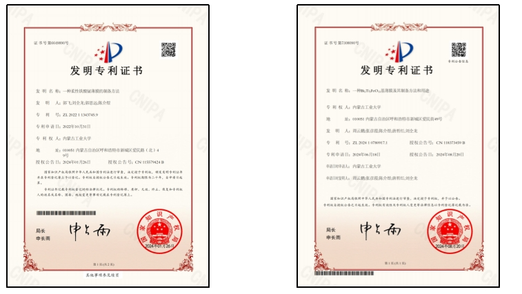 在科研过程中,团队首次提出了两种薄膜的高效制备方法,授权国家发明专利2项。