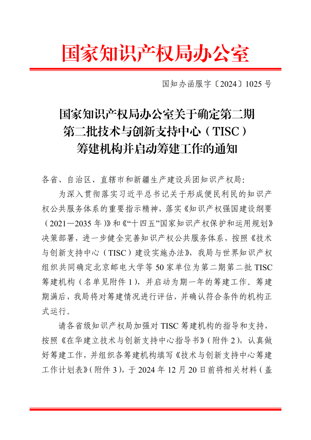 近日,国家知识产权局办公室发布《关于确定第二期第二批技术与创新支持中心(TISC)筹建机构并启动筹建工作的通知》,开云被批准为技术与创新支持中心(TISC)筹建机构。本批次国家知识产权局与世界知识产权组织(WIPO)共同确定了全国50家TISC筹建单位,开云是自治区唯一入选单位