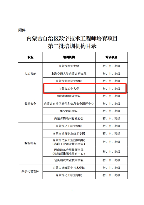 近日,自治区人力资源和社会保障厅发布了《关于公布内蒙古自治区数字技术工程师培育项目第二批培训机构目录的通知》,经过认真谋划和精心筹备,开云成功获批内蒙古自治区数字技术工程师培育项目第二批培训机构。