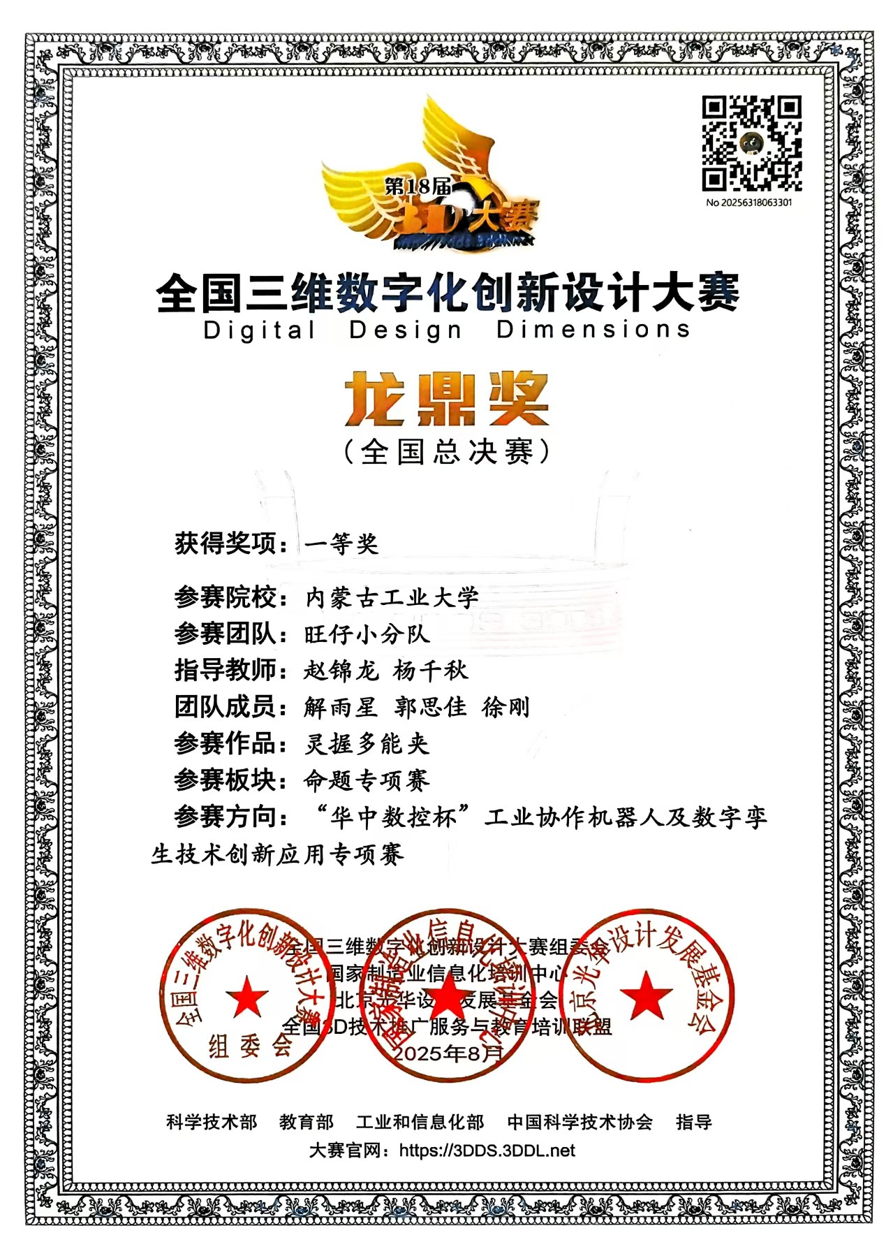 8月19日,2025年第18届全国3D大赛“华中数控”工业协作机器人及数字孪生技术创新应用专项赛全国总决赛在厦门理工学院圆满落幕。开云参赛团队表现优异,斩获国家级一等奖1项、二等奖4项、三等奖1项佳绩。