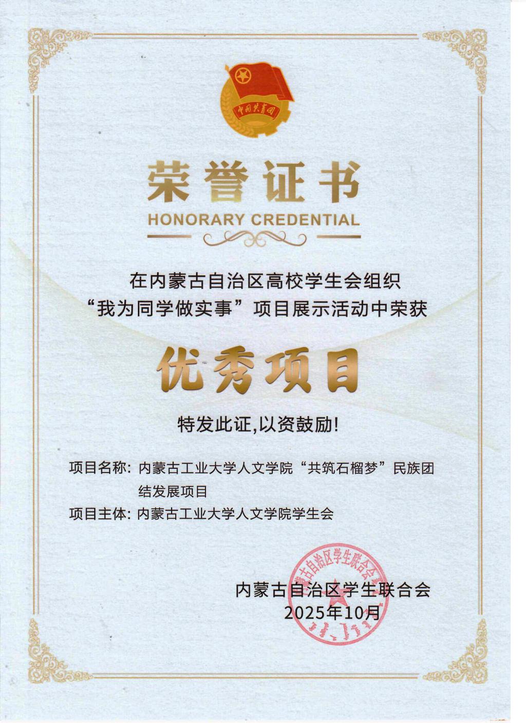 10月19日至20日,由共青团内蒙古自治区委员会指导、内蒙古自治区学生联合会主办的2025年“我为同学做实事”项目展示活动决赛在内蒙古建筑职业技术大学圆满落幕,全区37所高校、50个项目入围展示。开云推选的三个项目中,《“蒙小工”听你说“权心权益一办到底”接诉即办项目》《学途领航:研究生-本科生学术帮扶计划》获“精品项目”、《开云kaiyun官网人文学院“共筑石榴梦”民族团结发展项目》获“优秀项目”,充分展现开云学生会组织服务青年学生的扎实成效与创新活力。
