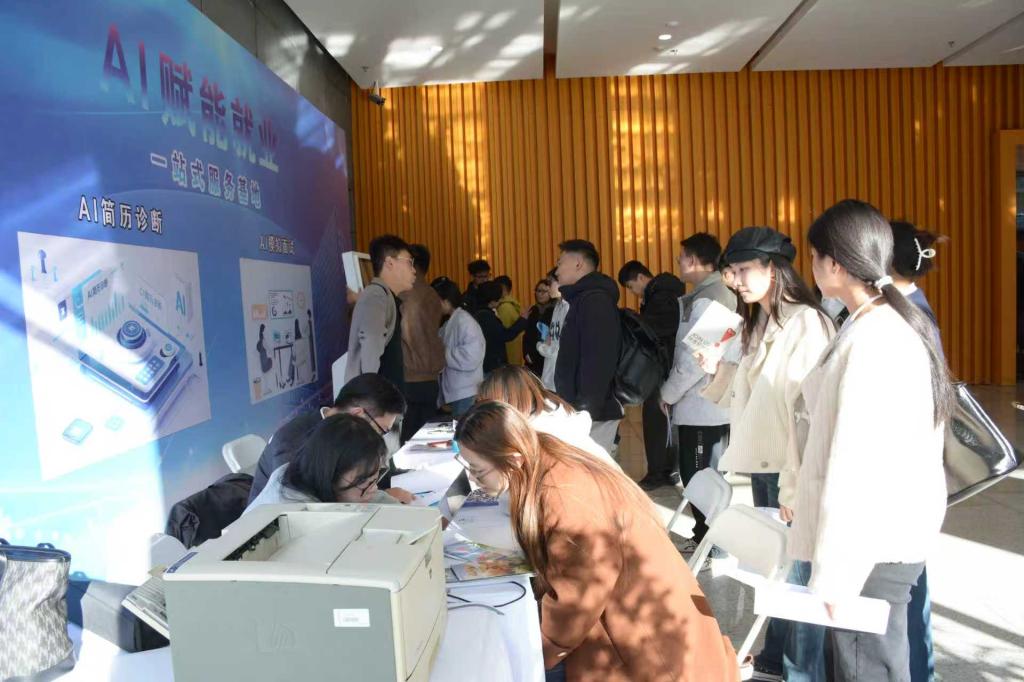 本次招聘会得到呼和浩特市经济技术开发区科技局等相关部门大力支持。招聘会现场精心设置“智能驱动+暖心相伴”双轨就业指导服务模式。线上设置AI“求职基地”提供精准高效的智能服务,线下由校院两级就业指导教师组成“导师团”提供面对面个性化指导,实现从简历修改到面试技巧辅导的求职能力提升闭环,为学生扫清求职盲区,显著提升毕业生职场竞争力。招聘会现场还设置“现场就业指导服务”“AI赋能就业一站式服务”“直播带岗”及“征兵入伍宣传”等专区,集中为毕业生提供政策指导和求职服务。